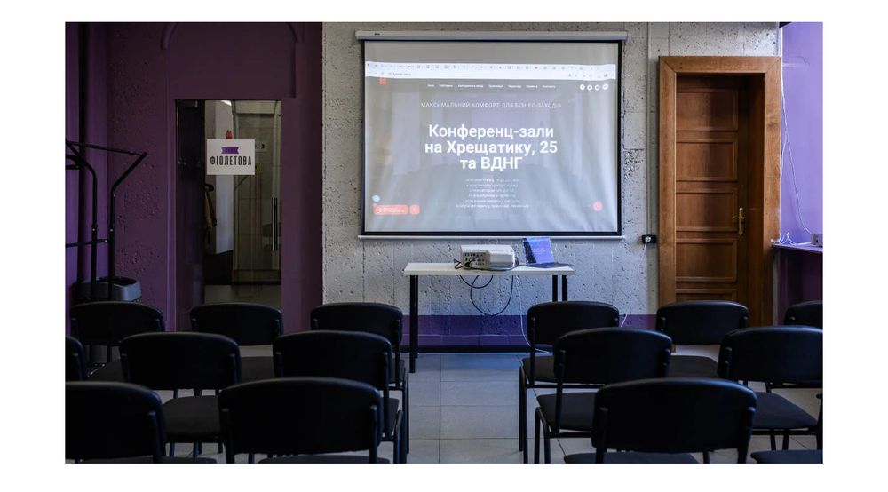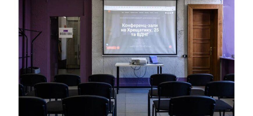 Як приклад — конференц-зали на Хрещатику, 25: зали до 180 осіб, необхідне обладнання, онлайн-трансляція, кейтеринг під ключ та послуги синхронного перекладу. Це зручне рішення для масштабних заходів у центрі Києва.