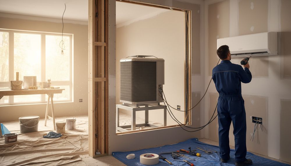 Перший етап монтажу кондиціонера охоплює чотири основні напрямки робіт. Кожен з них має критичне значення для подальшого функціонування обладнання. Ці роботи виконуються до початку оштукатурювання стін та інших оздоблювальних процесів.