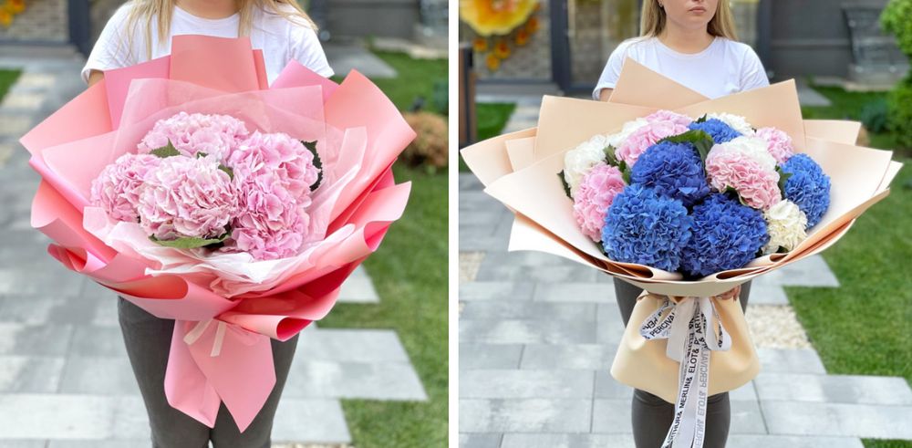 Гортензії — універсальні квіти, які підходять і жінкам, і чоловікам. Головне — обрати відтінок і форму букета. Світлі тони доречні для романтичних приводів, насичені — для офіційних або корпоративних подій. Замовити букет гортензій можна в онлайн-каталозі.