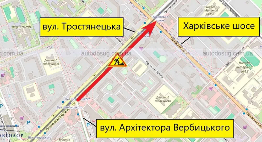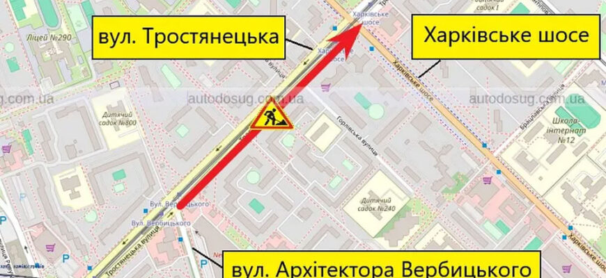 Обмеження діятимуть щодня з 08:00 до 17:00 на ділянці від вулиці Архітектора Вербицького до Харківського шосе через проведення дорожніх робіт.